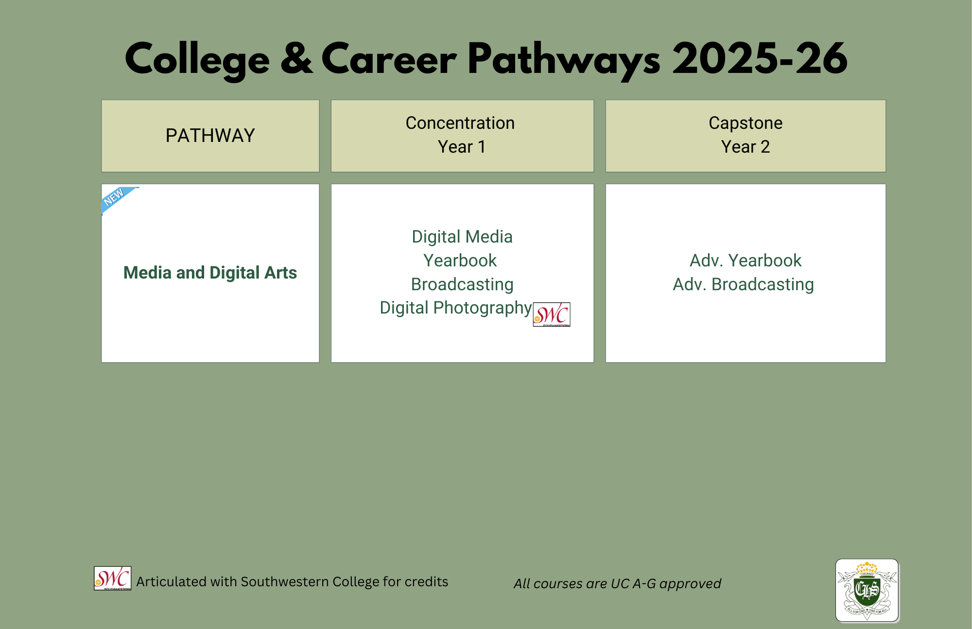 Coronado Unified School District is committed to graduating students who have explored careers and learned skills they can apply towards college and beyond. We achieve this goal by offering Pathways for College and Career. Pathways are a sequence of courses within an area of interest that lead to further study in college and to high skilled, high paying careers.